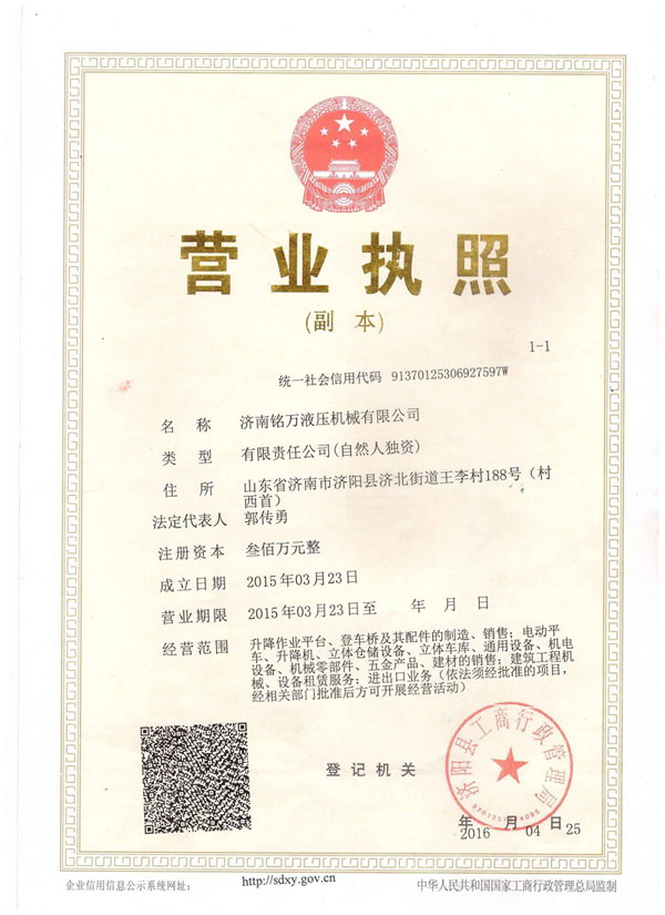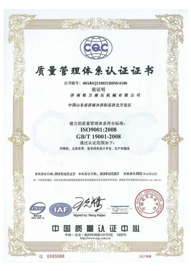 +濟(jì)南銘萬液壓機(jī)械有限公司【原濟(jì)南機(jī)械廠】,是全國制造液壓升降機(jī)、升降平臺的廠家,產(chǎn)品有八大系列六十多個品種,規(guī)格齊全、質(zhì)量穩(wěn)定、安全可靠、方便快捷;產(chǎn)品銷往全國各地,深受用戶好評。升降機(jī)廠家技術(shù)力量雄厚,產(chǎn)品設(shè)計先進(jìn)、工藝成熟、實驗檢測手段完善,“質(zhì)量第一,用戶至上”是我們的宗旨。 本公司采用先進(jìn)的管理手段,嚴(yán)密的質(zhì)量監(jiān)控體系和良好的售后服務(wù)隊伍為我們的產(chǎn)品走向市場創(chuàng)造......